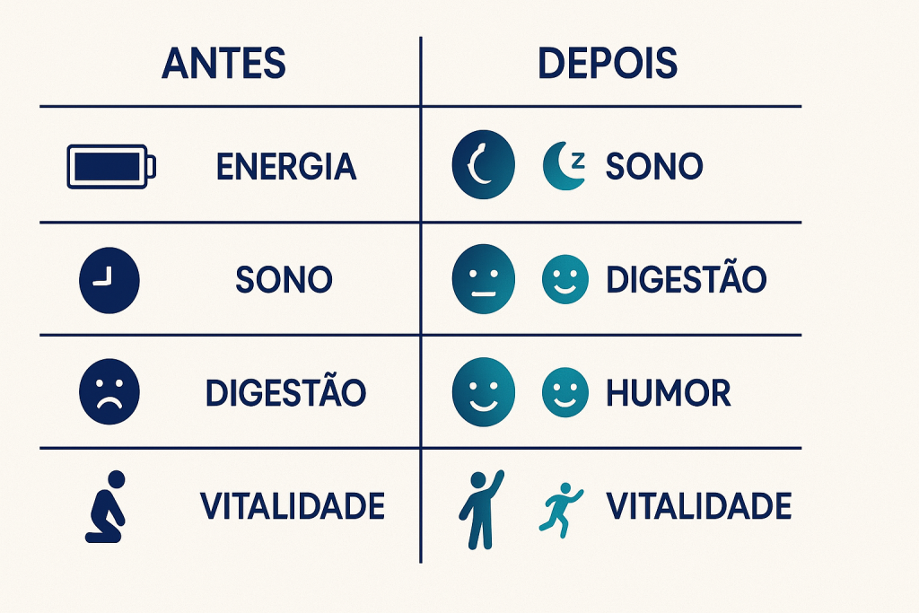 Além disso, o acompanhamento inclui orientações práticas sobre rotina saudável, alimentação equilibrada, qualidade do sono e pausas conscientes no dia a dia. Pequenas mudanças, quando bem orientadas, potencializam os resultados do cuidado natural.